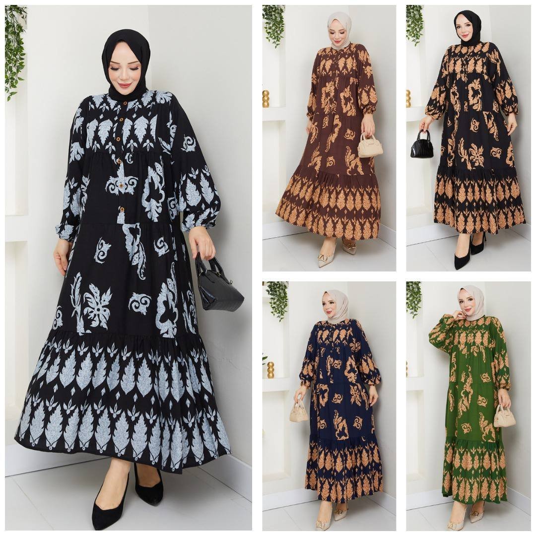 روبا تركية أنيقة 🌸 بخامة خفيفة وموديلات مزهرة 🌺، متوفرة بمقاسات L حتى 5XL وألوان ❤️💚💙.